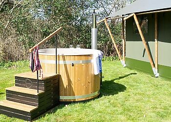- Wood-fired hot tub under stars