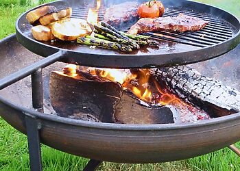 - Wood-burning stove and outdoor firepit